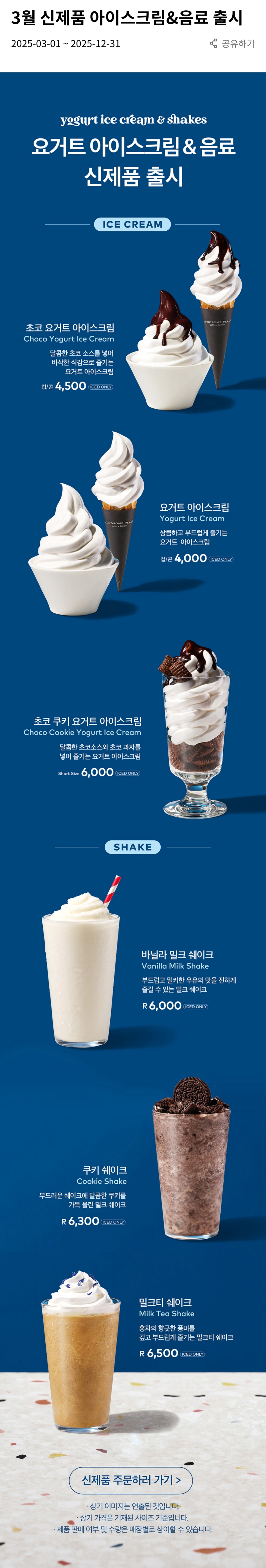 바닐라, 쿠키, 밀크티 쉐이크가 있다