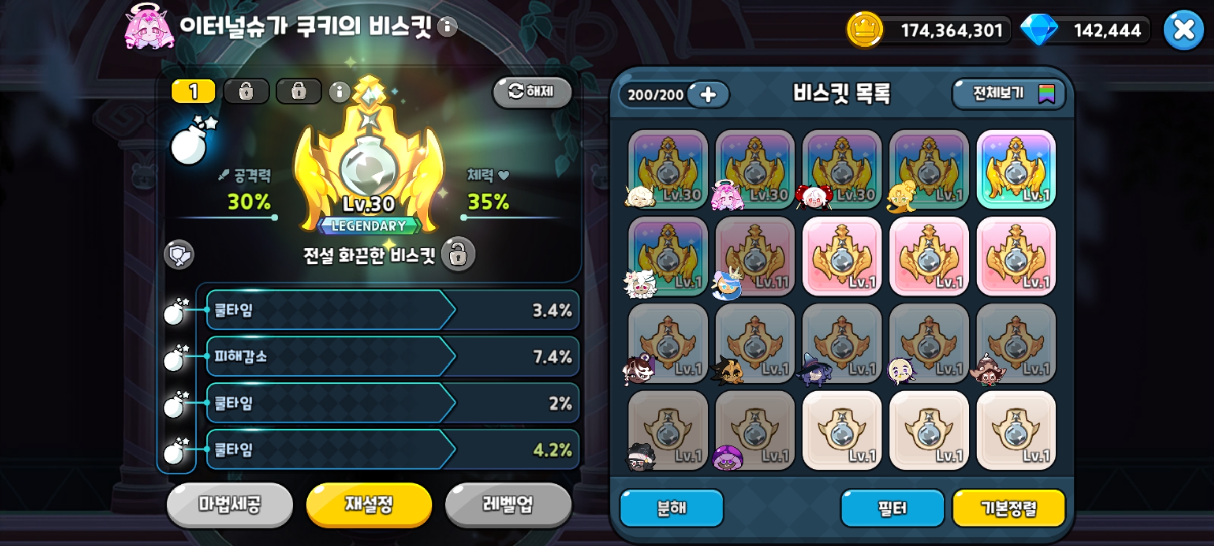 비스킷은 쿨타임과 극딜용 공격력 둘 중 하나를 선택하면 된다