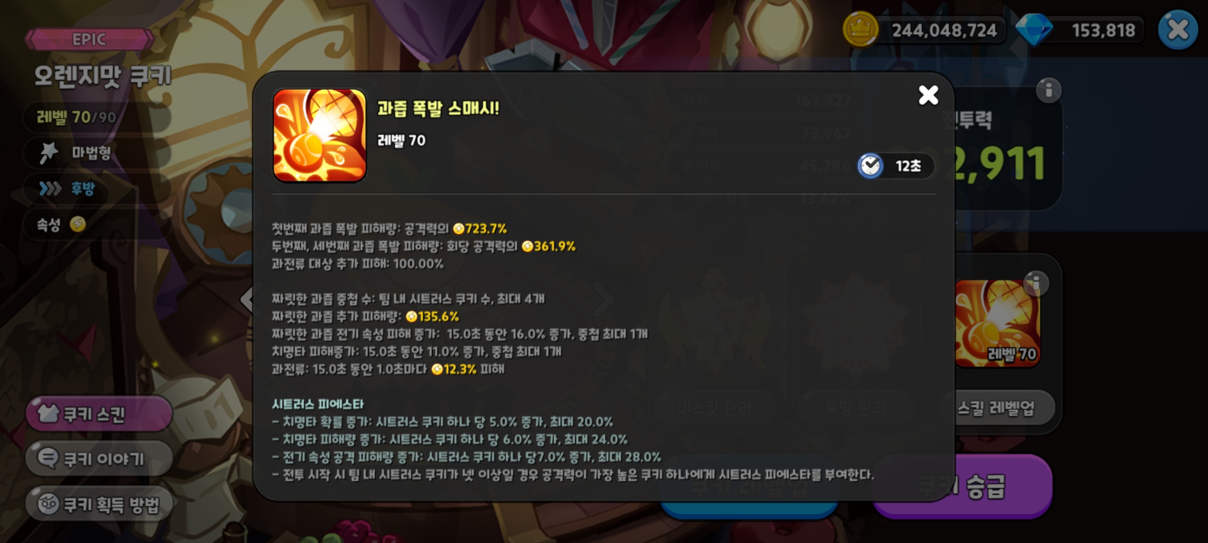 치명타 피해량 증가 : 시트러스 쿠키 하나 당 6.0% 증가, 최대 24.0%