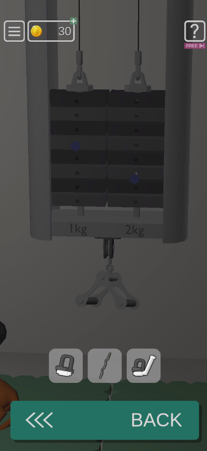 다른 공은 중간을 막고 있는 아령을 눌러서 치우고