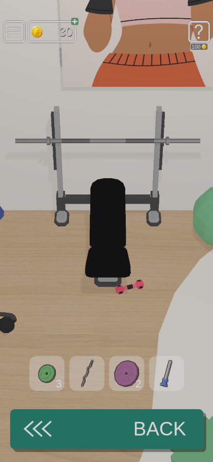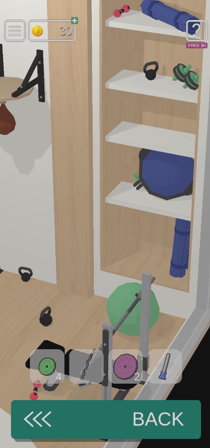 우선 안쪽에 의자 위에 핑크색 아령이 하나 있고