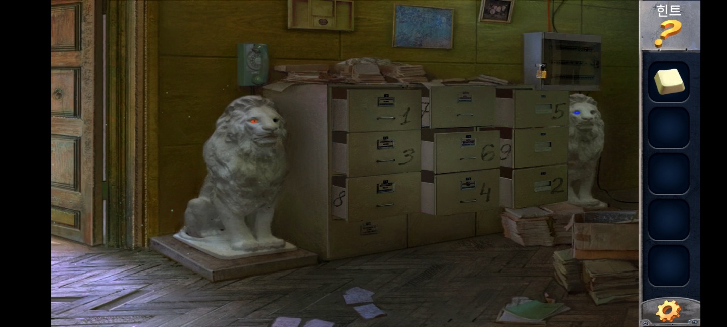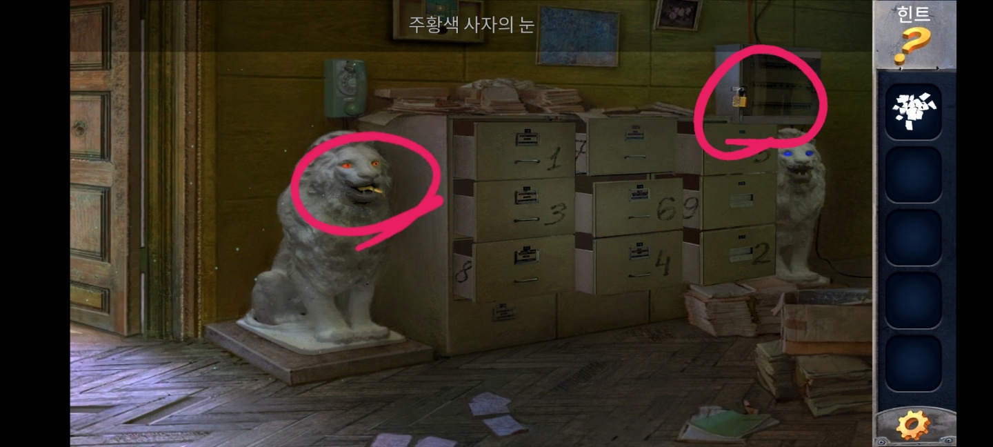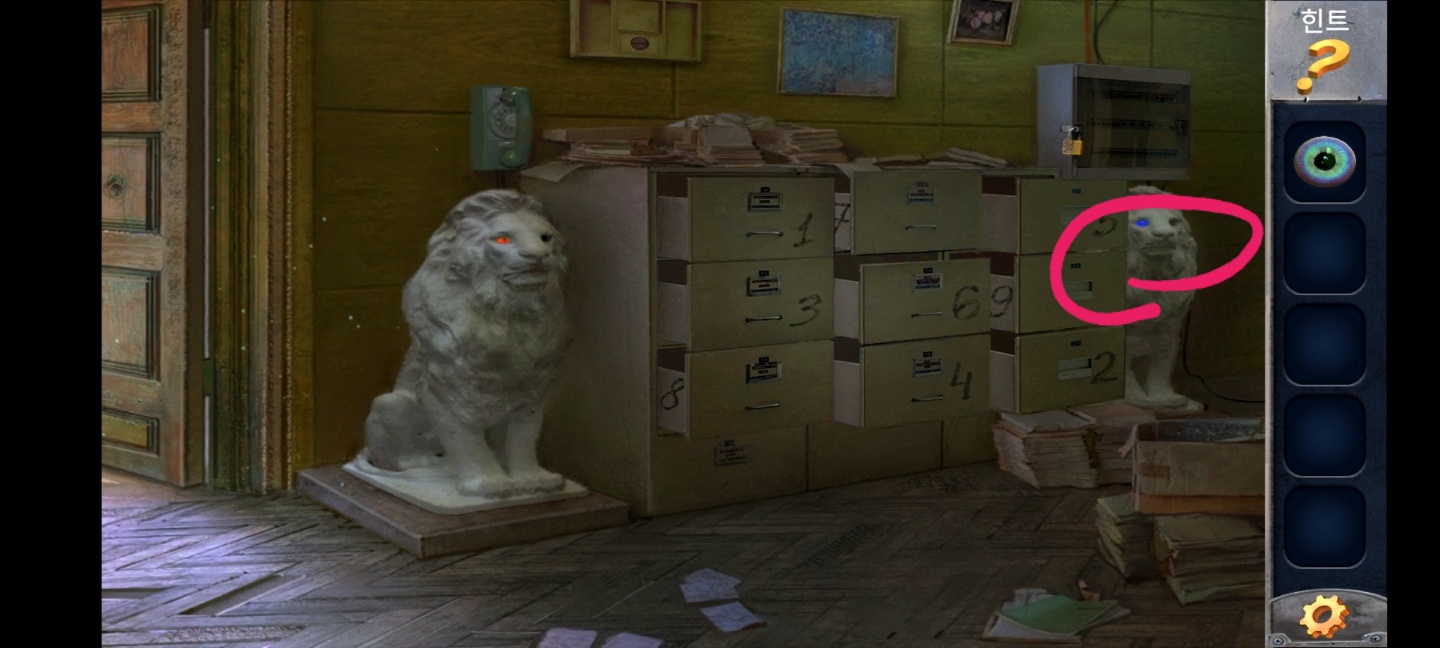 다시 방으로 들어와서 오른쪽 사자상에 넣어주면