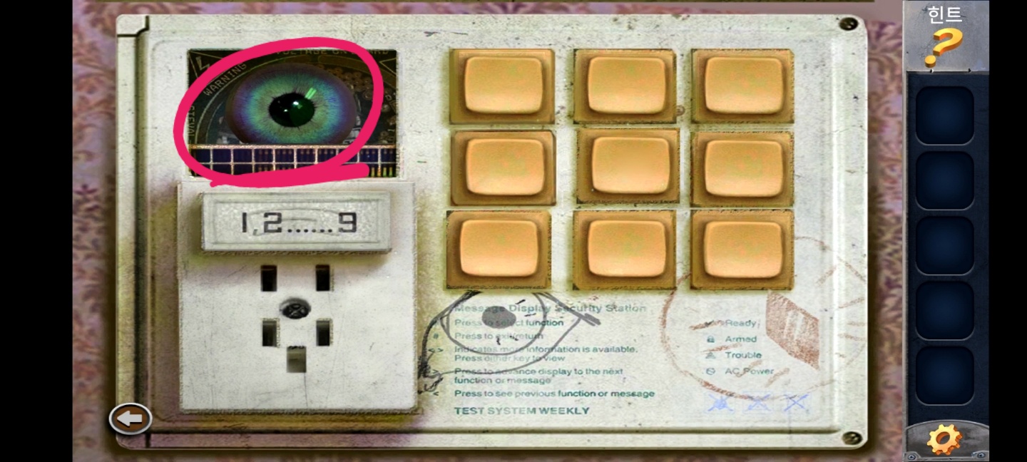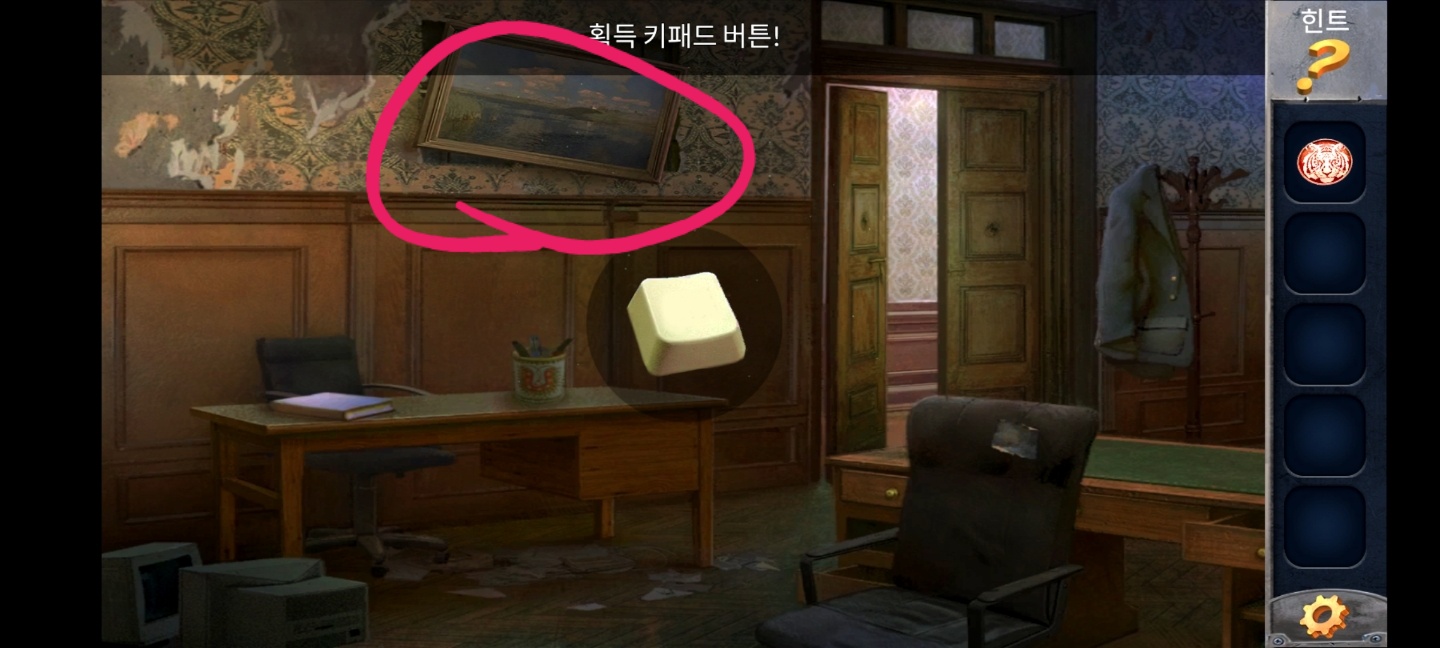 다시 처음 방으로 와서 호랑이 뒤에 패드를 보면 키패드가 하나 빠져있는데