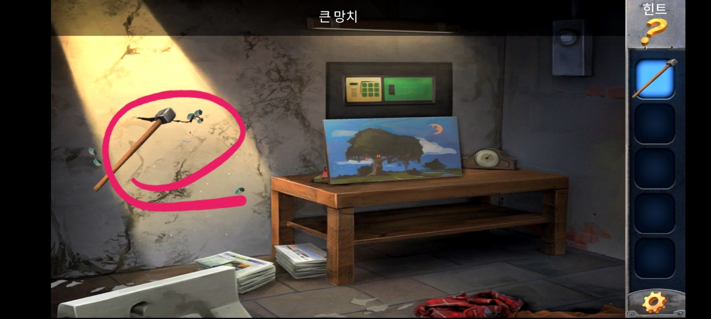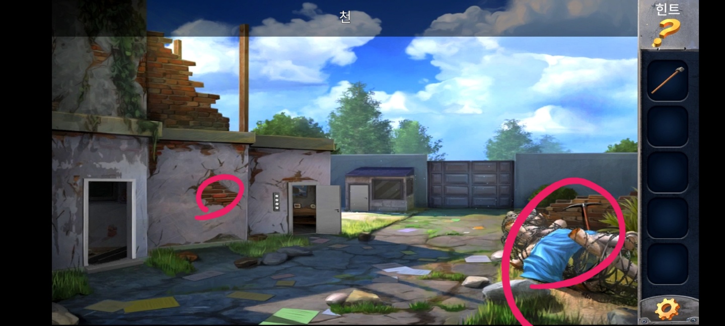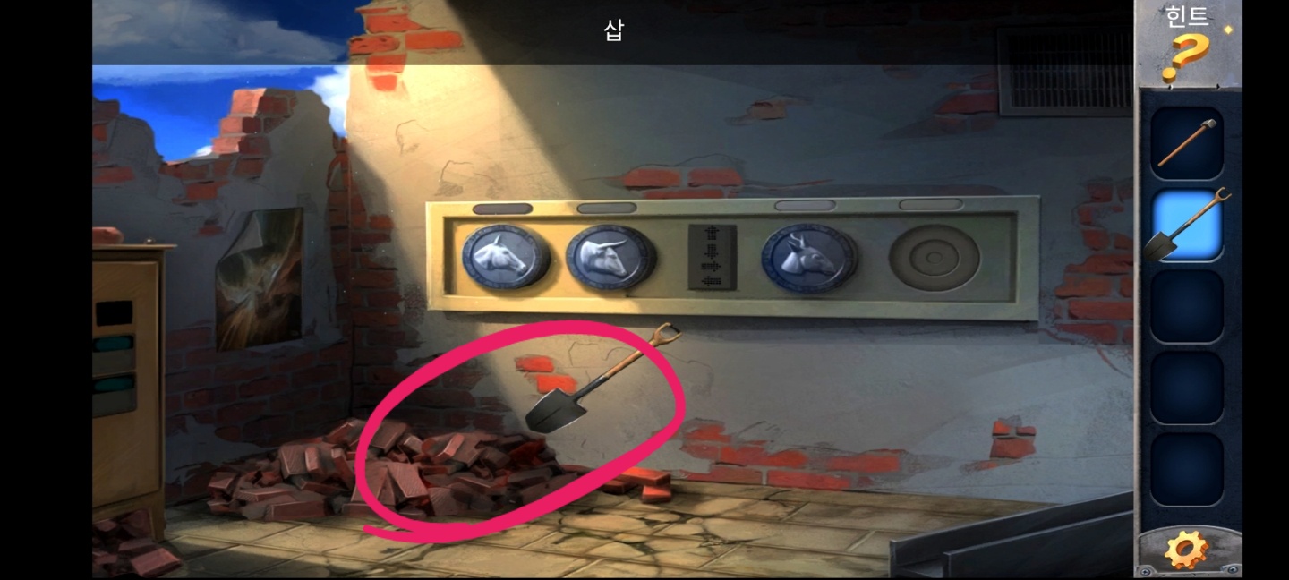 밖으로 나와서 철문 쪽에 있는 삽을 얻자
