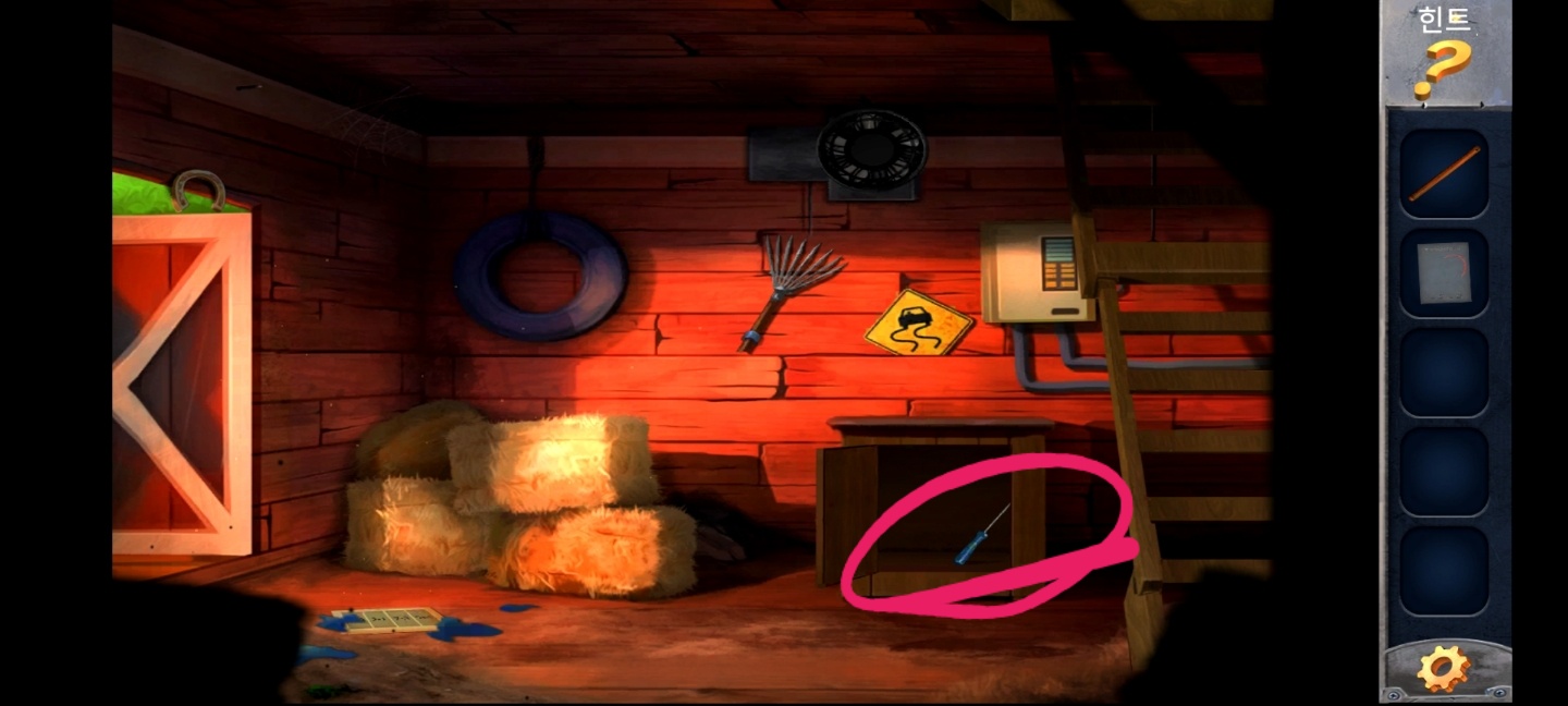 농기구를 통해 벽에 있는 열쇠를 얻고