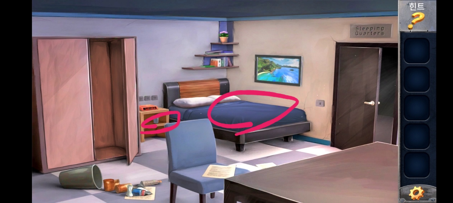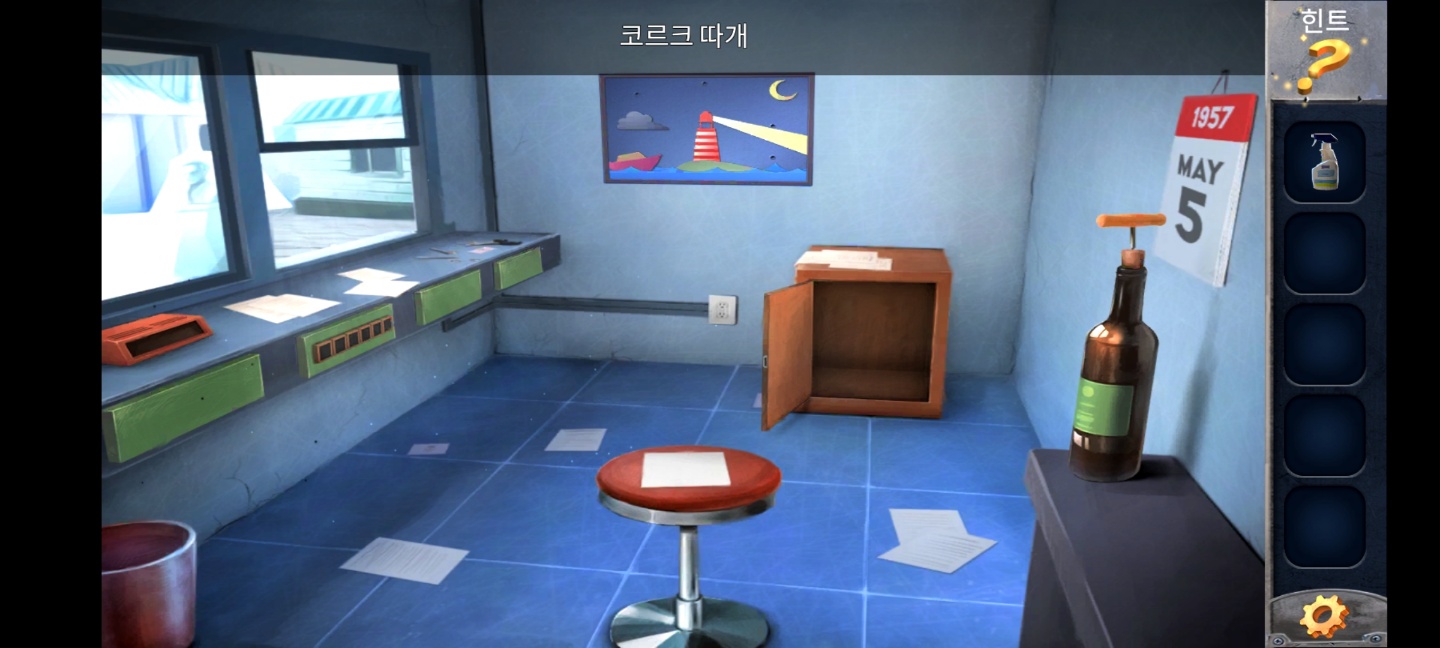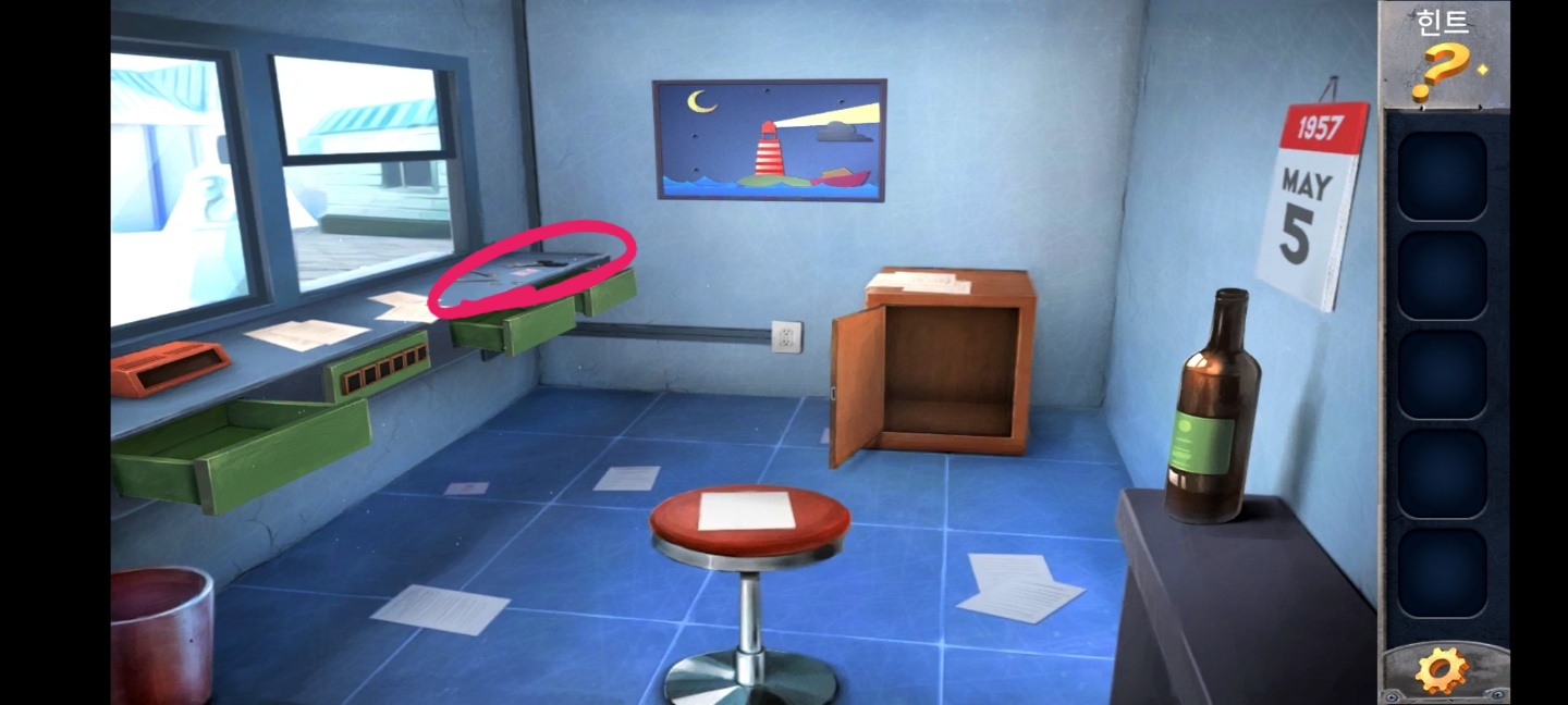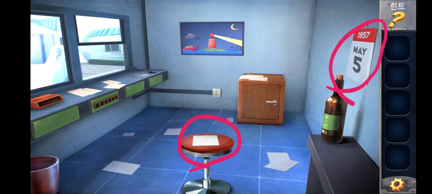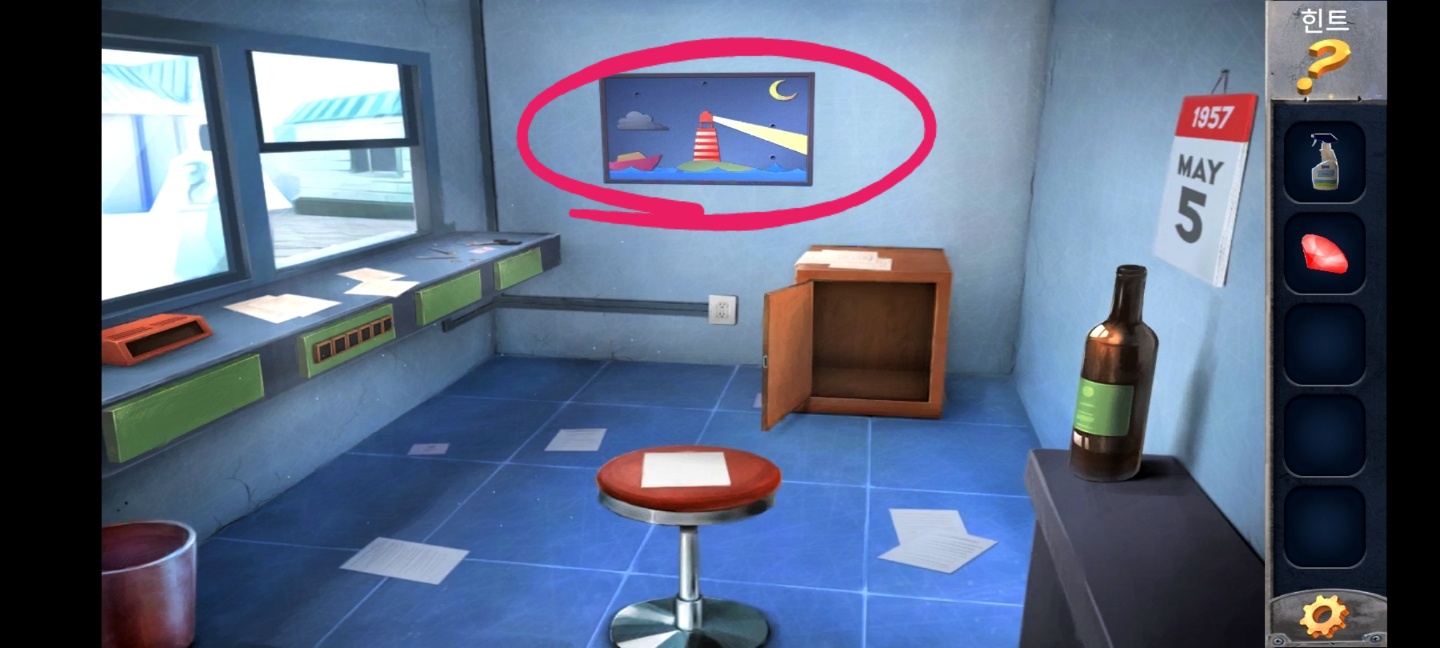 나와서 벽을 보면 찢어진 종이에 등대 그림이 그려져 있다