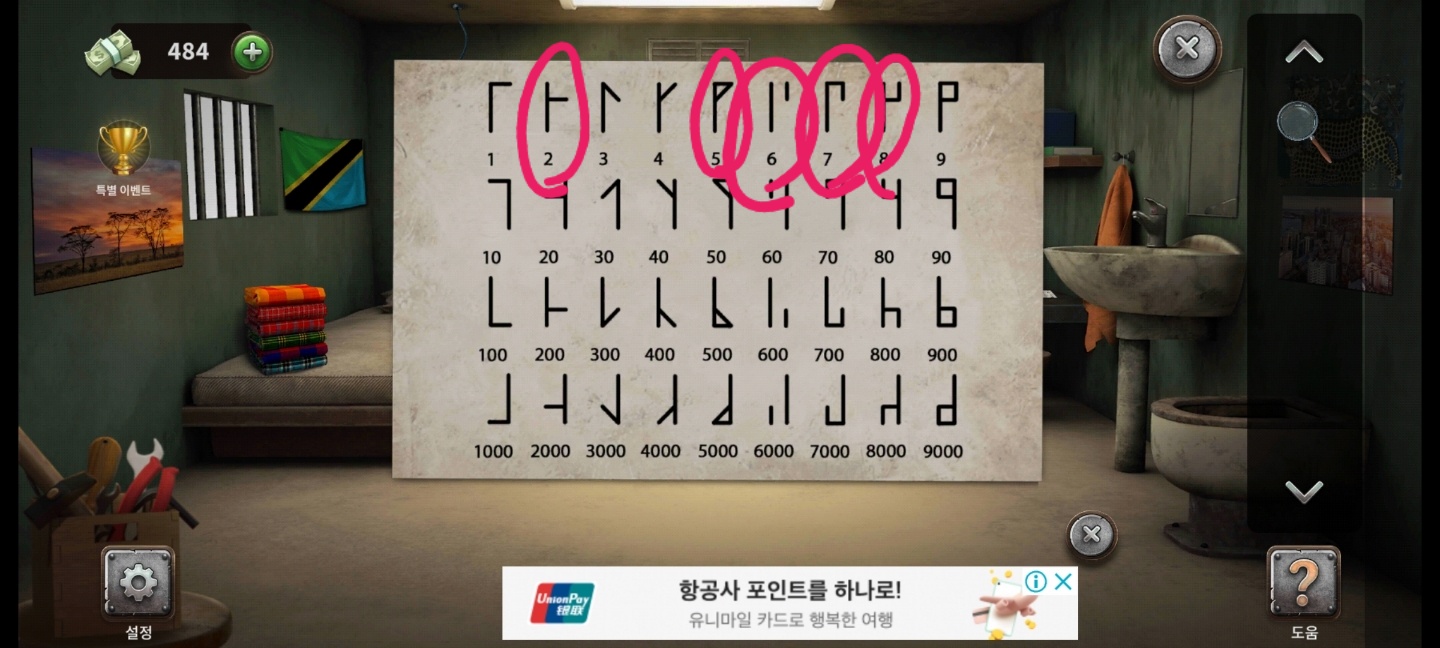 방탈출 게임 100개의 문(감옥 탈출 게임) 16 ~ 20 단계 공략이다.